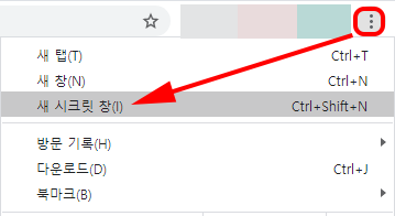 1.크롬을 실행하고 왼쪽상단의 점3개 버튼을 클릭 후 3번재 메뉴 '새 시크릿 창'을 실행합니다.