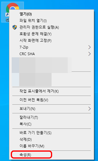 1. 위의 기능이 너무 번거롭고 시크릿 모드 기능을 자주 이용하시는 분이라면 바로가기에 시크릿 모드 설정을 할 수 있습니다. 바탕화면의 크롬 바로가기를 선택 후 마우스 오른쪽 클릭을 합니다. 그리고 마지막 속성을 클릭해주세요.
