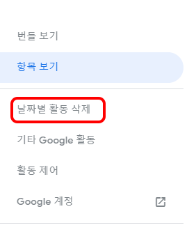 3.다시 왼쪽 메뉴를 보시면 3번째 '날짜별 활동 삭제'가 보입니다. 클릭을 하면 왼쪽과 같이 활동 삭제를 할 수 있는데