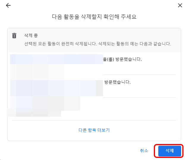 이제 크롬과 구글 웹사이트에서 내가 방문한 기록과 검색 내역을 모두 삭제 했습니다. 도움이 되었으면 좋겠습니다.