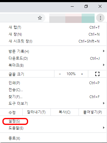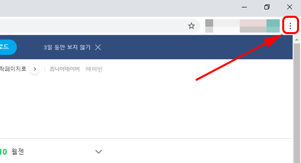 1.크롬을 실행 후 오른쪽 상단의 점3개 모양을 클릭합니다.