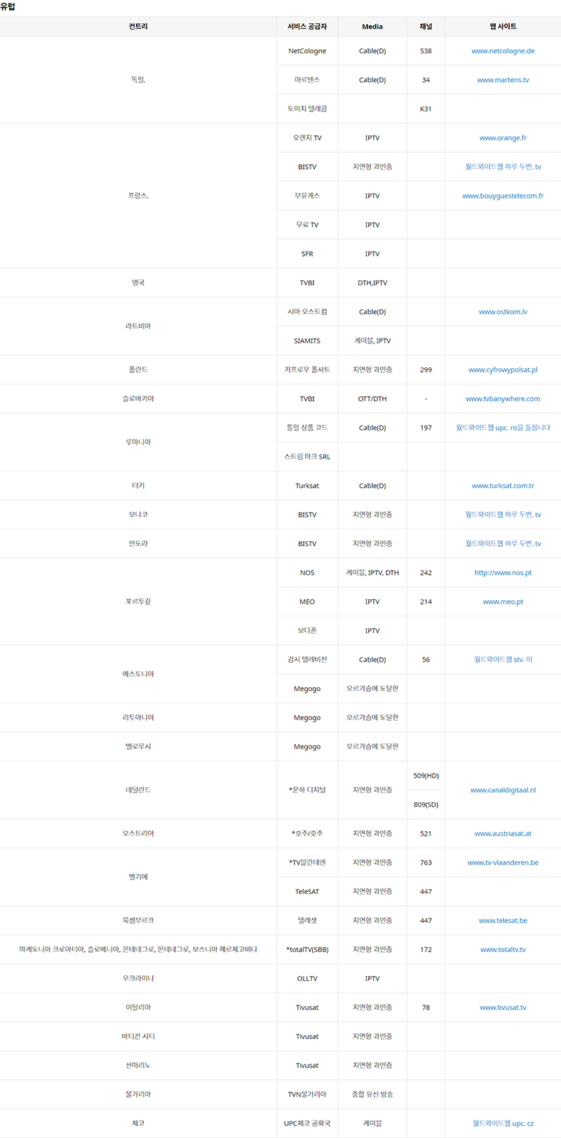 만약 해당 국가에 거주하시면 위의 링크를 방문하셔서 지역을 살펴보시고 서비스 공급자를 확인 웹사이트에 방문하셔서 확인을 해보시거나 서비스 공급자 확인 후 해당 업체에 확인을 해보시길 바랍니다.
