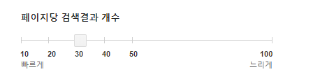 하지만 한페이지에 너무 많은 내용을 보면 당연히 느려집니다. 적당하게 조절하셔서 한페이지에 검색결과를 몇개를 보여줄지 설정을 해보세요.