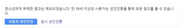 만약 검색을 하였는데 아래와 같은 성인인증 내용이 나왔다면 로그인을 하지 않은 상태이면 로그인을 해주세요. 구글 아이디를 성인인증을 해두었다면 아래와 같은 내용은 나오지 않습니다.