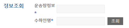 4. 그리고 내가 반품 보낼 택배의 기존 운송장번호와 수하인명을 입력하고 조회를 눌러주시면 됩니다.