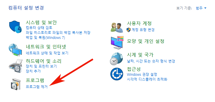 2. 왼쪽 하단의 프로그램 제거를 클릭하여 이동하여 줍니다.