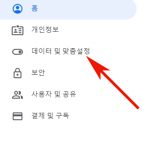 2. 그리고 왼쪽 메뉴에서 데이터 및 맞춤 설정을 눌러주세요.