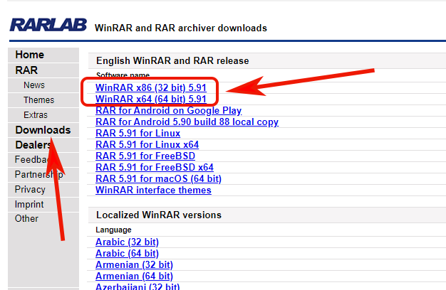 WinRAR and RAR 5.91 release WinRAR 5.91 is available in Arabic (32 bit, 64 bit), Armenian (32 bit, 64 bit), Bulgarian (32 bit, 64 bit), Catalan (32 bit, 64 bit), Chinese Simplified (32 bit, 64 bit), Chinese Traditional (32 bit, 64 bit), Croatian (32 bit, 6