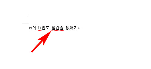 1. 아래와 같이 워드에서 처음 글을 작성시 첫줄을 작성하면 빨간줄이 생기지 않습니다.