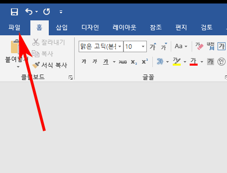 3. 빨간줄을 없애기 위해 상단의 메뉴에서 첫번째 파일을 눌러주세요.