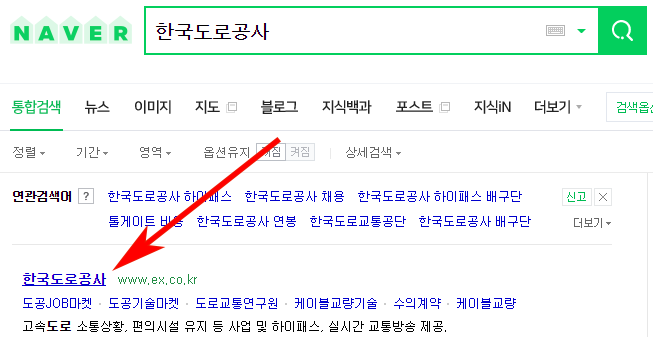 1. 고속도로 통행료 조회를 위해서 네이버,구글등 검색사이트에 한국도로공사로 검색을 해주세요. 아래와 같이 검색 후 해당 한국도로공사 홈페이지로 이동해줍니다.