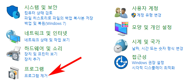 2. 그리고 왼쪽 맨 하단의 프로그램 - 프로그램 제거 항목을 클릭하여 이동해주시면 됩니다.