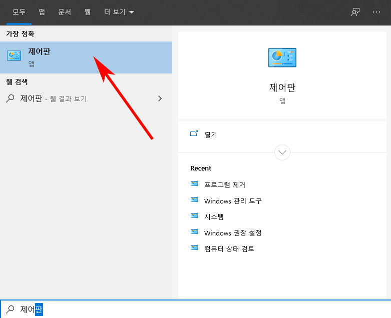 1. 삭제방법은 간단합니다. 아래와 같이 시작에서 제어판을 검색하여 제어판을 실행해주시면 됩니다.