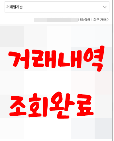 4. 저는 6개월로 선택을 해보았습니다. 아래와 같이 거래내역 조회가 됩니다. 개인정보여서 부득이하게 모자이크 처리하였습니다.