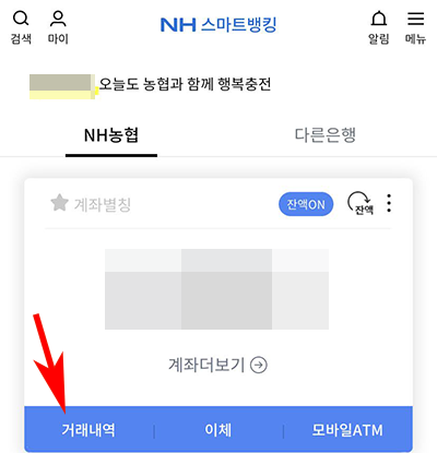 농협 거래내역 조회 방법② - 모바일 앱을 통한 확인