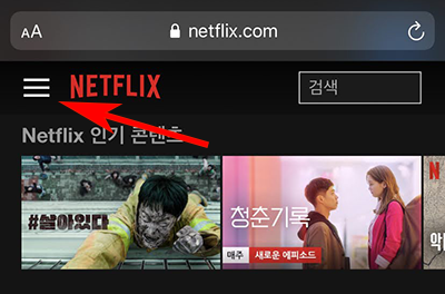 3. 넷플릭스 로그인 후 왼쪽 상단의 三모양을 눌러서 이동을 해주시기 바랍니다. 메뉴로 이동할 수 있습니다.