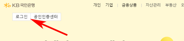2. 국민은행 홈페이지 접속 후 로그인을 해주세요. 공인인증서,스마트폰 인증,아이디등으로 로그인을 해주시면 됩니다. 저는 공인인증서로 간편하게 로그인을 하였습니다.
