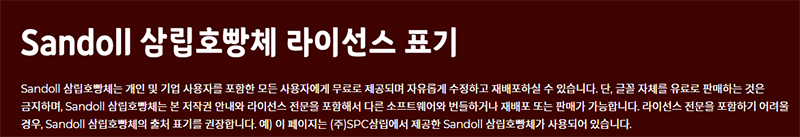 삼립호빵체는 상업적 이용이 가능합니다. 홈페이지 하단을 보시면 내용이 자세하게 나와있습니다. 아래와 같이 무료 제공으로 자유롭게 사용이 가능합니다.