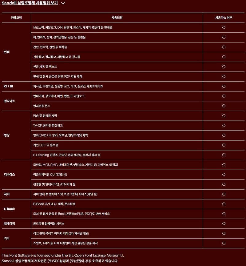산돌 삼립호빵체 사용범위에 대해서도 자세하게 설명이 되어 있습니다. 웹사이트 인쇄,CI,영상등 다양한 곳에서 무료로 사용이 가능합니다.