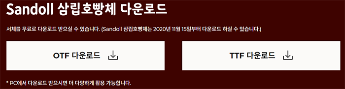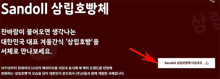 이동 후 중앙을 보시면 Sandoll 삼립호빵체 다운로드를 찾을수 있습니다. 클릭을 해주시면 스크롤이 자동으로 아래로 쭉 이동이 되는 것을 볼 수 있습니다.