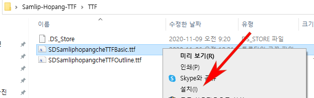 TTF폴더로 이동하면 ttf파일이 2개가 나옵니다. 베이직과 아웃라인 버전입니다. 두개의 차이는 베이직은 일반 버전이고 아웃라인은 폰트 안에 색깔이 투명하게 비어있다고 생각하시면 됩니다. 아래 사진으로 보시면 차이를 금방 아실 수 있습니다.