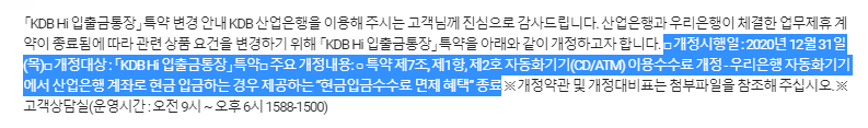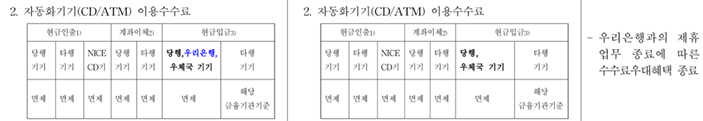 - 내용 우리은행 자동화기기에서 산업은행 계좌로 현금 입금하는 경우 제공하는 "현금입금수수료 면제 혜택" 종료
