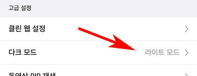 이동후 하단에 고급설정에서 2번째 다크모드 메뉴가 보입니다. 현재는 라이트 모드 상태로 설정이 되어 있습니다. 선택해서 이동해주세요.