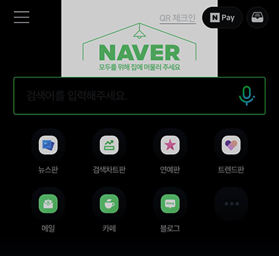 아래와 같이 네이버와 구글에 접속해보았습니다. 네이버는 모바일에서 네이버 로고부분은 흰색 그대로 남아있네요. 구글을 완벽하게 다크모드가 적용되었습니다.