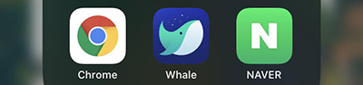 모바일에서 적용을 위해 웨일 어플을 실행해주세요. 설치가 안되어 있다면 설치를 해주시면 됩니다. 아이폰은 앱스토어에서 웨일로 검색하면 쉽게 다운로드가 가능합니다.
