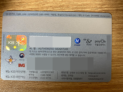 아래는 새로 갱신한 나라사랑카드입니다. 디자인이 아주 심플하게 변경되었습니다. 그리고 기존 앞면에 있던 카드번호가 뒷면으로 이동되었고 사용 가능기한도 뒷면에 있습니다. 제가 이미 카드 서명까지해서 모자이크처리 하였습니다. 사용 기한은 25년까지입니다. 앞으로 5년간 열심히 사용해야겠습니다. 그때까지 단종 되지 말고 계속 유지하고 있길 바라며 포스팅 마치겠습니다.