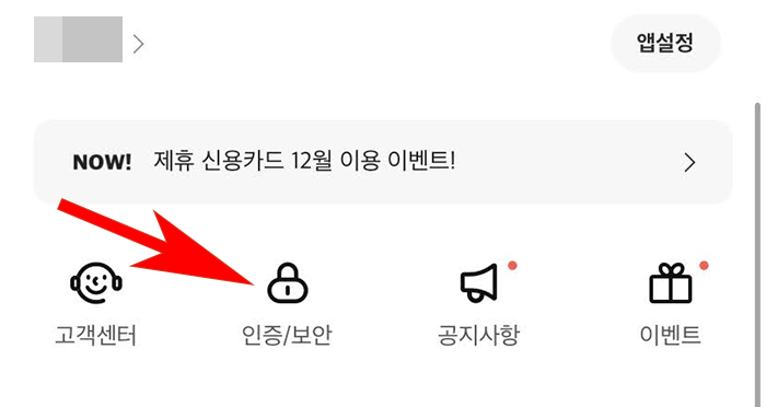 이동 후 상단을 보시면 고객센터,인증/보안,공지사항,이벤트 4개의 메뉴를 볼 수 있습니다. 여기에서 2번째 인증/보안 메뉴를 눌러서 다시 이동을 해주세요.