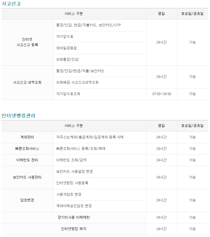 ▣ 조회는 과거거래내역신청을 제외하고는 평일 24시간 이용 가능