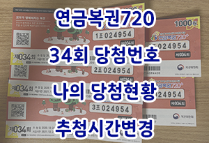 연금복권720 34회 당첨번호 나의 당첨현황+추첨시간변경