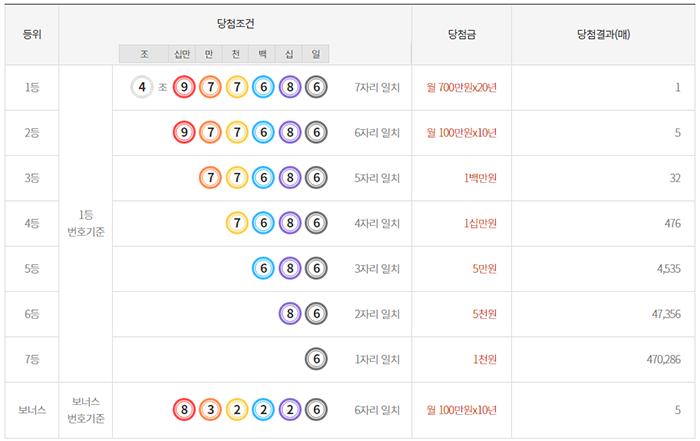 연금복권720 34회의 당첨번호는 아래와 같습니다.