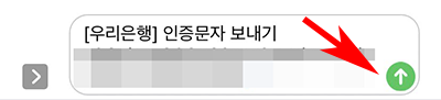 그럼 이제 인증문자 보내기 화면이 나옵니다. 여러 알파벳이 나옵니다. 그냥 보내기를 눌러주시면 됩니다. 저는 아이폰이여서 화살표로 나오네요.